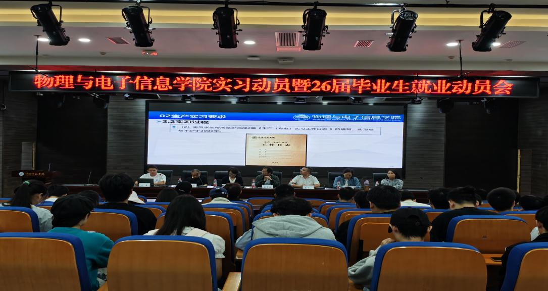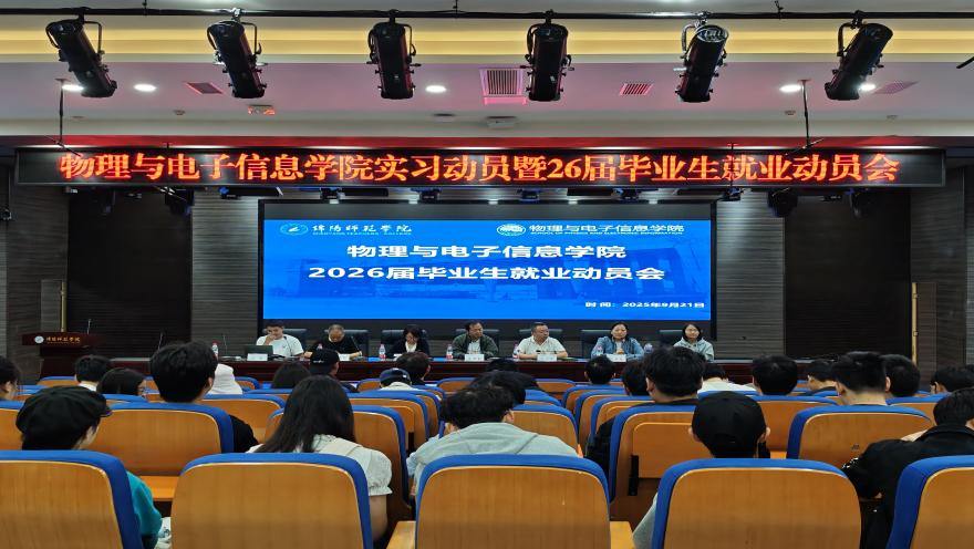 为了做好2026届毕业生实习与就业工作,9月21日14时,物理与电子信息学院在厚德楼A246召开实习动员暨2026届毕业生就业动员会。学院党委书记陈擘威,副院长徐辉、武文斌,实习指导教师刘鑫及毕业生辅导员出席会议。
