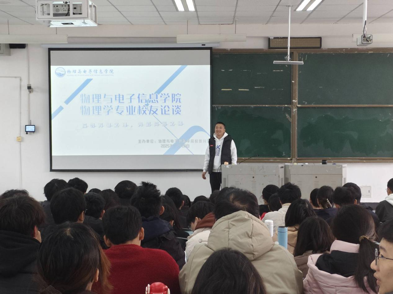 11月20日,物理与电子信息学院校友论坛在厚德楼242教室举行。我院物理系2005级校友、绵阳东辰中学物理高级教师连天刚老师受邀返校,以“示范课+经验分享”形式,聚焦物理师范生关切的教学实践落地与职业长远发展两大核心,和22级学弟学妹们展开了深度交流。