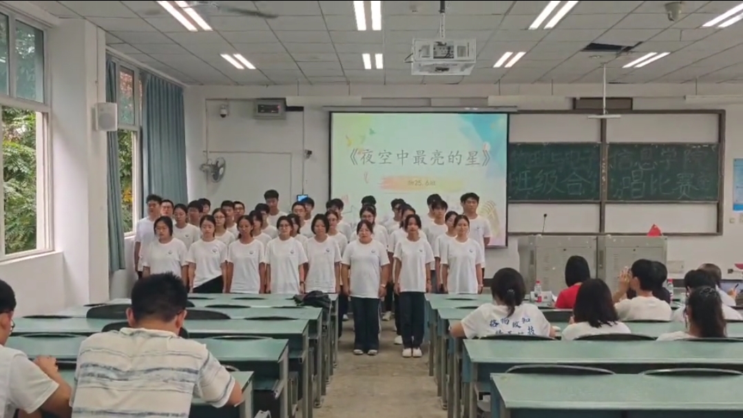 比赛结束后,分别是25级2班的作品《紫荆花盛开》,25级6班的作品《夜空中最亮的星》和25级4班的作品《我乘着风飞过来》荣获学院班级合唱比赛的一、二、三等奖。