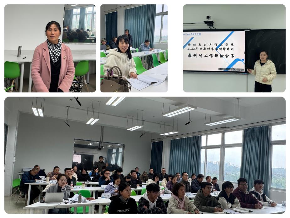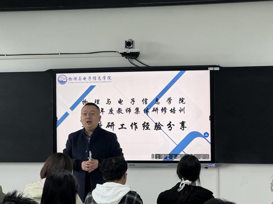 为提升教师教学水平、促进经验交流,推动学院教学与科研创新能力提升,11月6日下午14:00在笃行楼417,物理与电子信息学院组织开展教师集体研修活动,武文斌副院长主持,全体教师参与,氛围浓厚、成效显著。