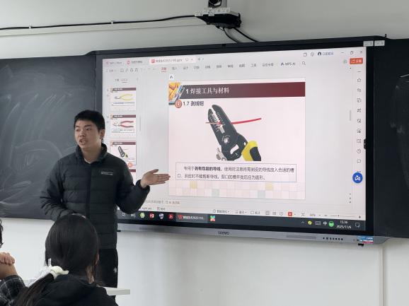 研修活动首设教学经验交流环节,三位新进教师结合课程分享教学实践。郭嘉围绕《工程类数学基础 I》“数列的极限”,结合电子类专业学生特点拆解抽象概念;刘鑫针对《电子工艺技术》“手工焊接技术”,讲解操作规范并现场演示;何静围绕《C语言程序设计》课程中的for循环语句,结合电子类专业同学竞赛实例综合讲解。