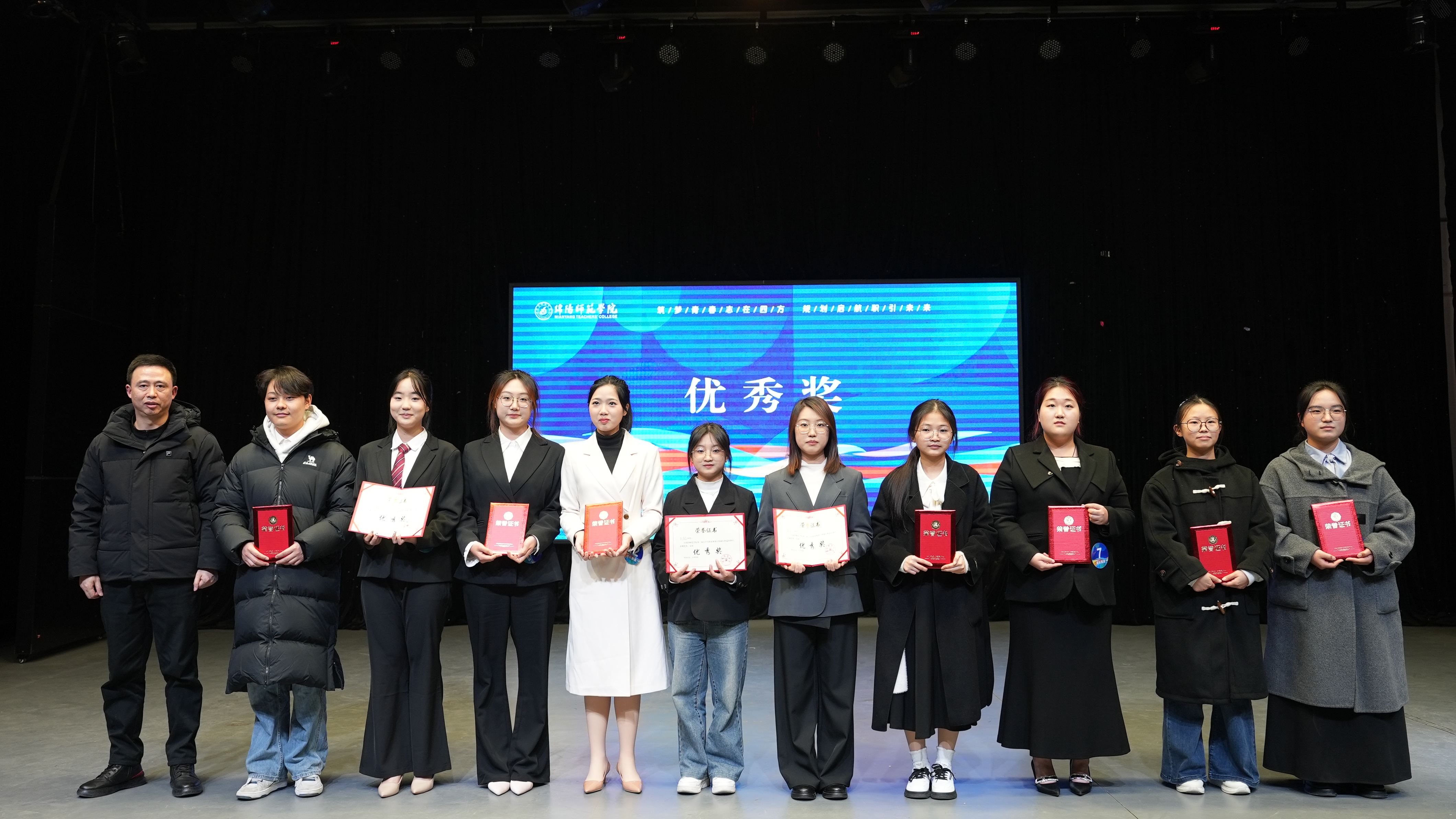 经过前期激烈角逐,我院共有4名同学脱颖而出,晋级总决赛。在竞争尤为激烈的就业赛道中,2023级7班的赵烽讯与王俪蓉同学凭借扎实的专业功底、清晰的职业规划和出色的现场表现,在28名决赛选手中力拔头筹,摘得金奖,并包揽该赛道第一、第二名。在成长赛道中,2024级4班的杜倩茹、2024级5班的宁彩仪亦表现优异,展现了良好的发展潜力和综合素质,最终荣获优秀奖。何林、李佳隆两位老师获评“优秀指导教师”,物理与电子信息学院也凭借精心的组织和出色的工作,获“优秀组织奖”。